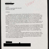 Dislikes the inclusion of the Washington Times on the journalism shows and encloses information discrediting the publication.