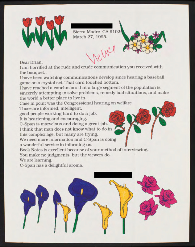 Praises C-SPAN, believes most of the country is trying to solve problems, and expresses dismay at a rude comment C-SPAN received.