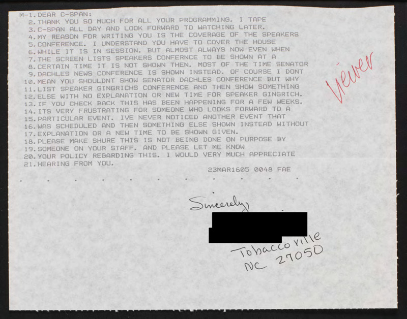 Letter to C-SPAN, n.d.; 27050