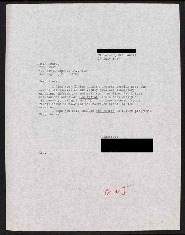 Letter to C-SPAN, 1997-07-13; 44121