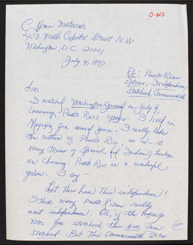 Letter to C-SPAN, 1997-07-04; 78520