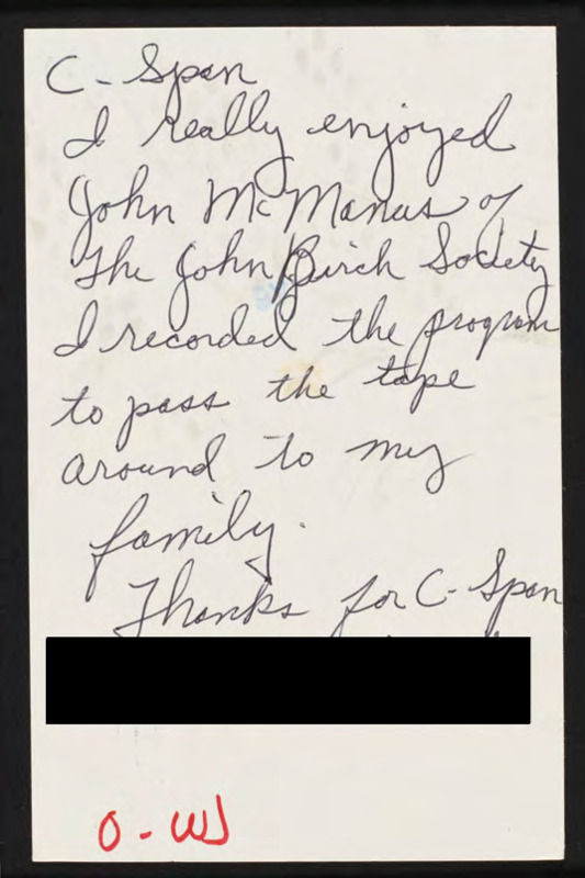 Letter to C-SPAN, 1996-05-01