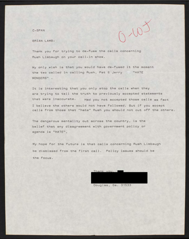 Letter to C-SPAN, n.d.; 31533