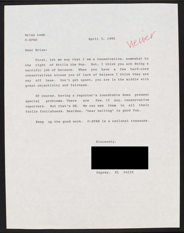 Praises C-SPAN's balance but laments that there are not more conservative reporters.