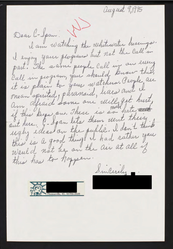 Letter to C-SPAN, 1995-08-09; 36784