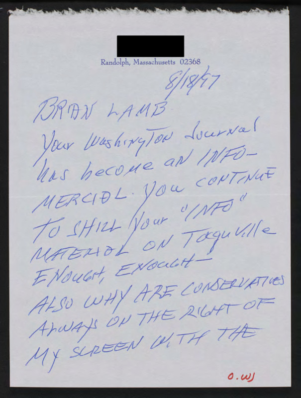 Letter to C-SPAN, 1997-08-18; 02368