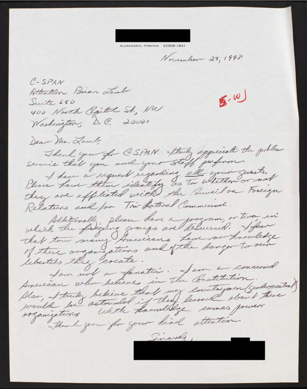 Letter to C-SPAN, 1998-11-25; 22308