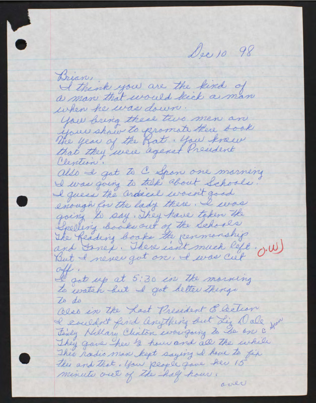 Letter to C-SPAN, 1998-12-10; 54495