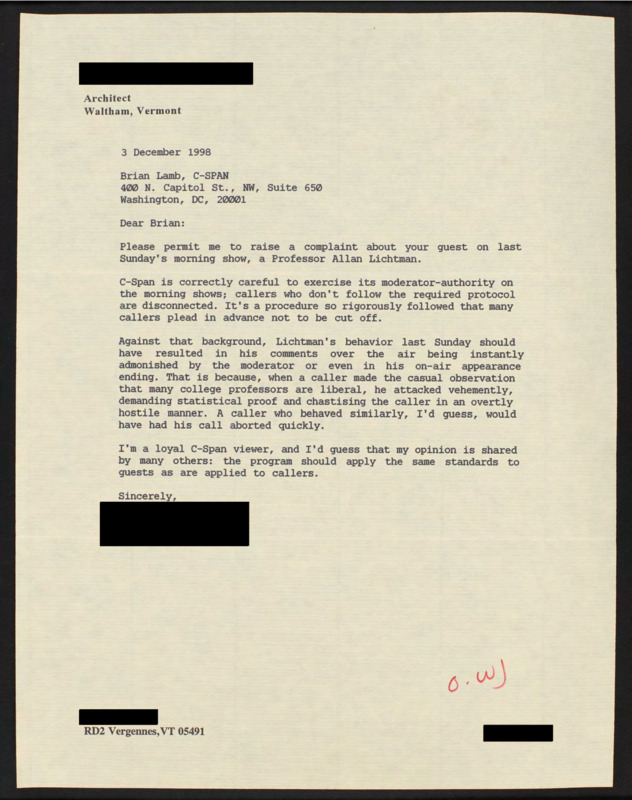 Letter to C-SPAN, 1998-12-03; 05491