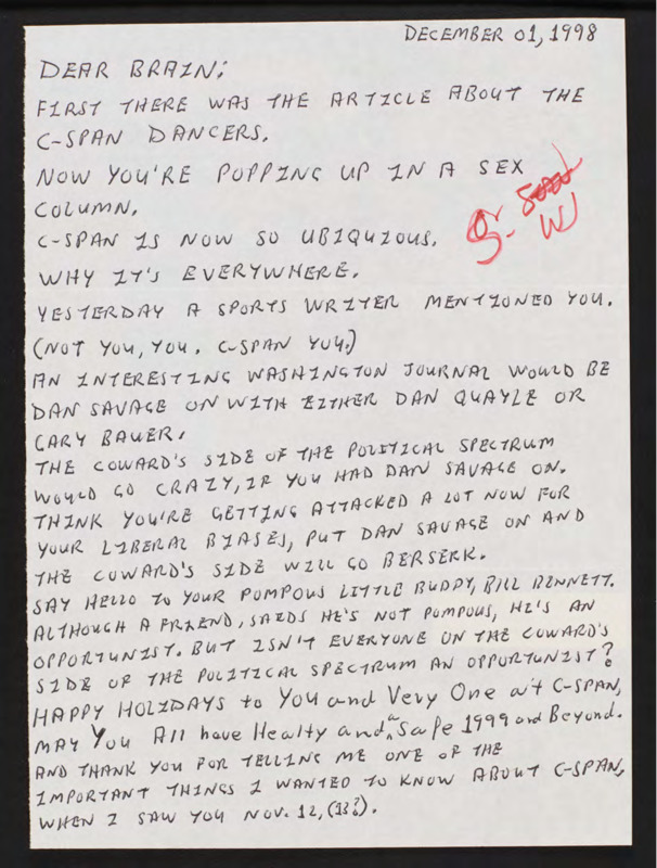 Letter to C-SPAN, 1998-12-01; 60640