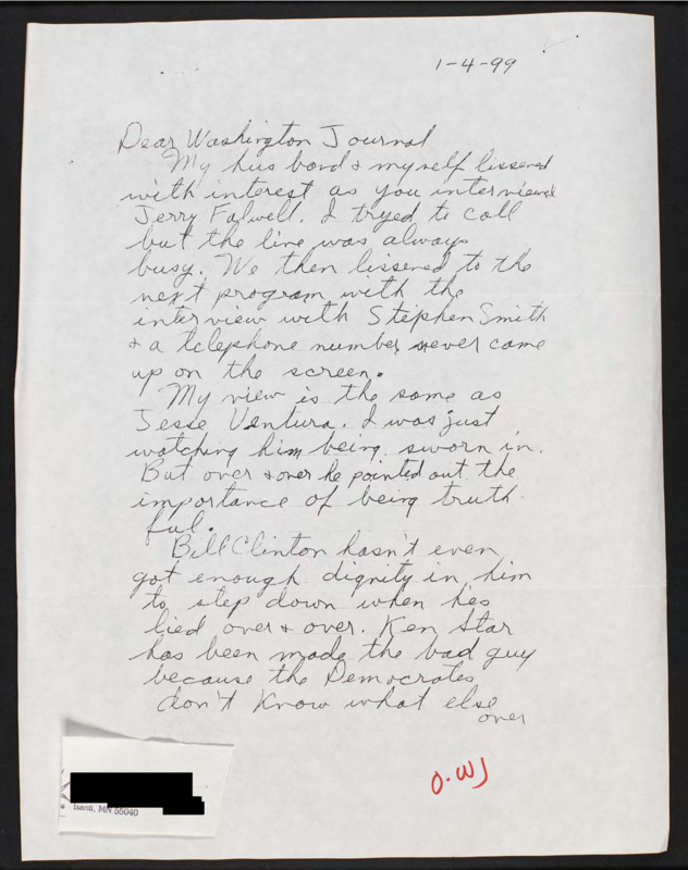 Letter to C-SPAN, 1999-01-04; 55040