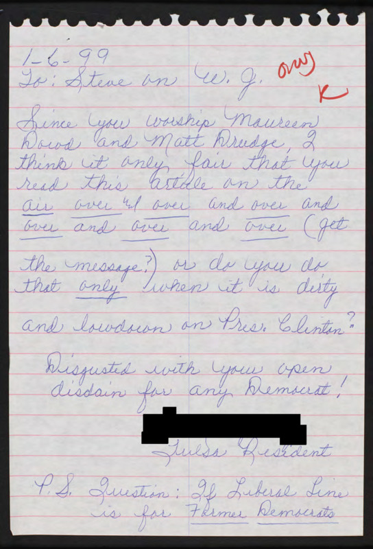 Accuses a C-SPAN host of bias against Bill Clinton and argues that the call-in lines are imbalanced.