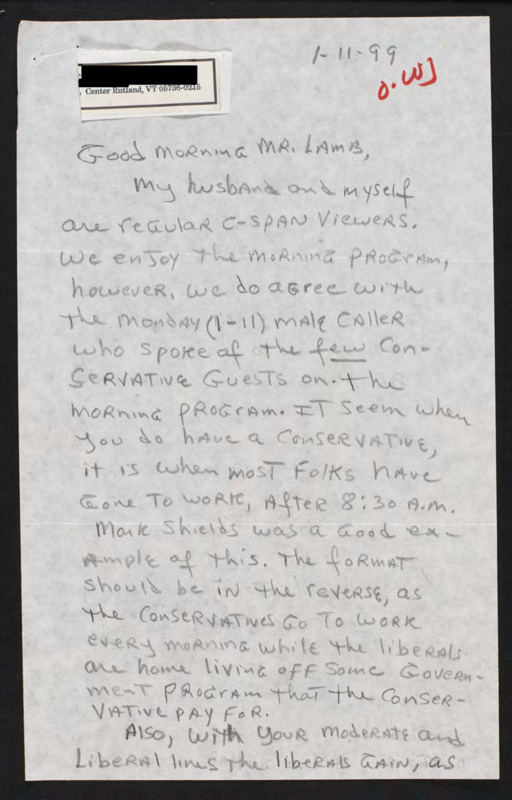 Letter to C-SPAN, 1999-01-11; 05736
