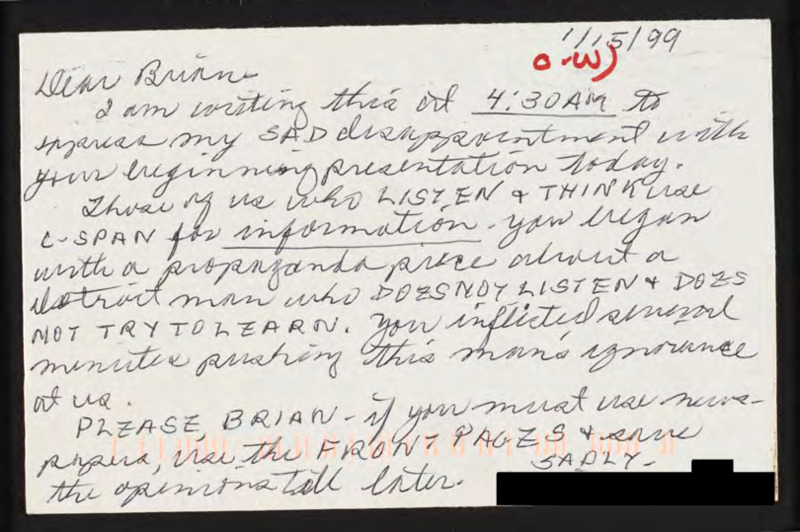 Letter to C-SPAN, 1999-01-15; 90621