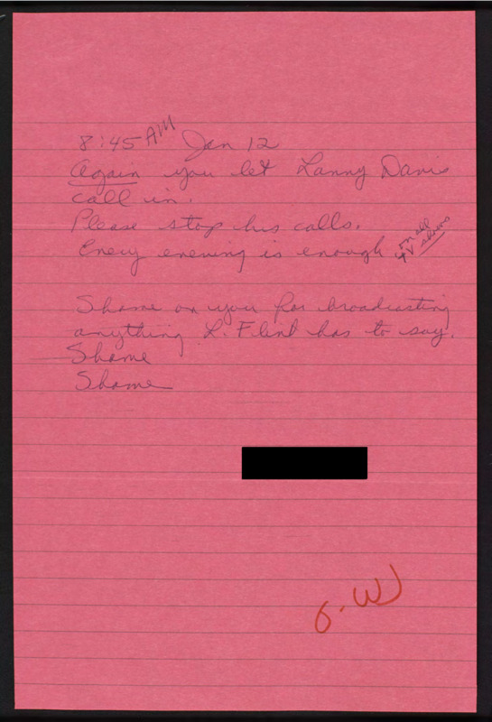 Requests C-SPAN stop letting through calls from one particular person and shames C-SPAN for featuring Larry Flynt.