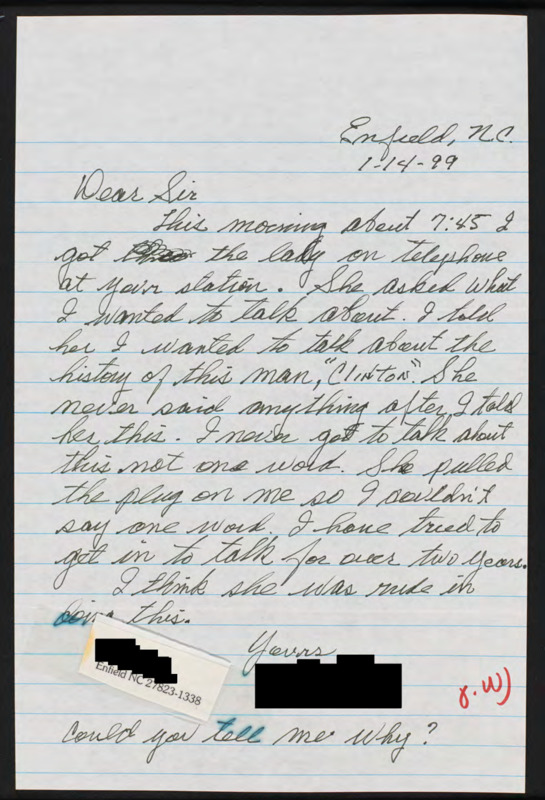 Letter to C-SPAN, 1999-01-14; 27823