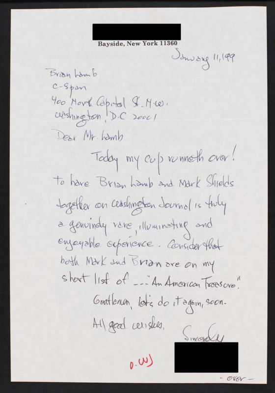 Praises C-SPAN for having Brian Lamb and another guest on a program.