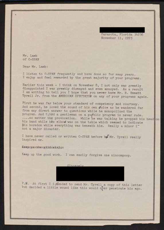 Letter to C-SPAN, n.d.; 34236