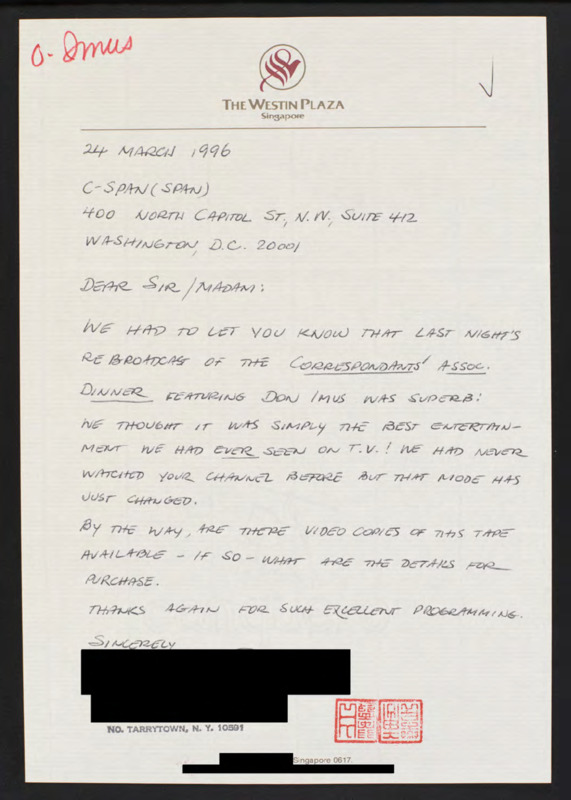 Letter to C-SPAN, 1996-03-24