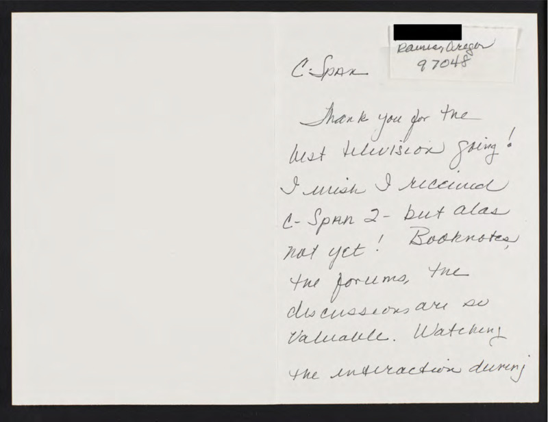 Letter to C-SPAN, 1995/1999?