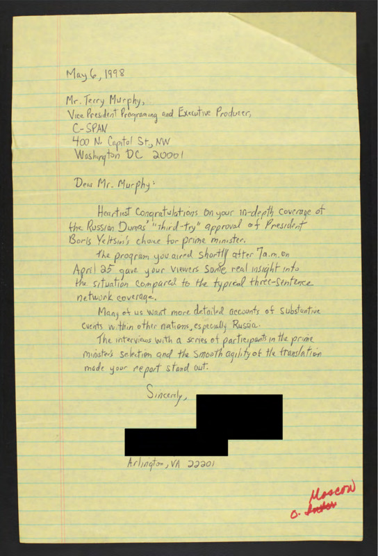 Letter to C-SPAN, 1998-05-06