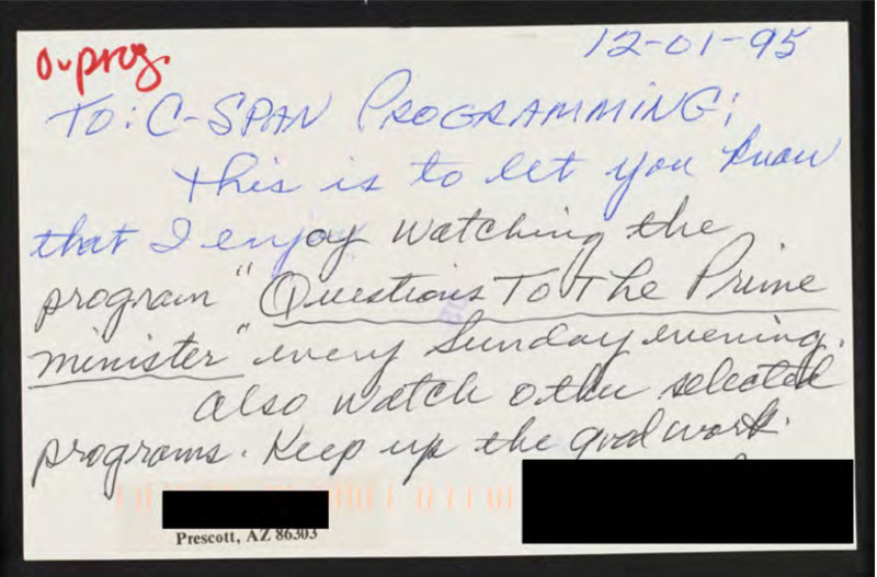 Letter to C-SPAN, 1995-12-01