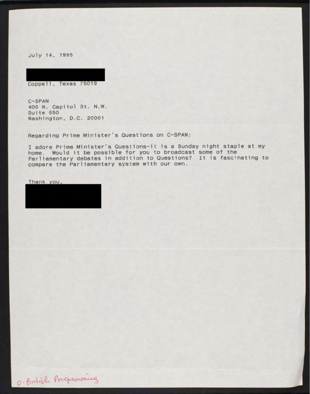 Asks if C-SPAN can broadcast some Parliamentary debates in addition to the "Question Time."