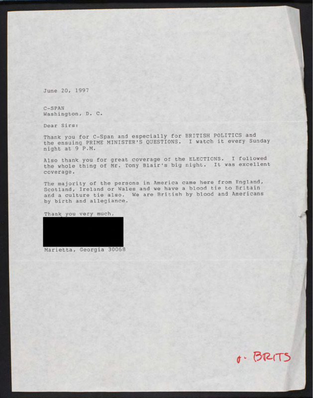 Thanks C-SPAN for airing the British politics and "Question Time," as well as elections.