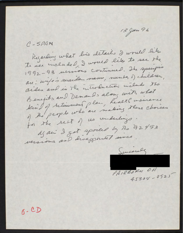 Asks for more information regarding Congresspeople's wives' names, number of children, and other benefits and health insurance information.
