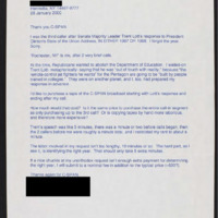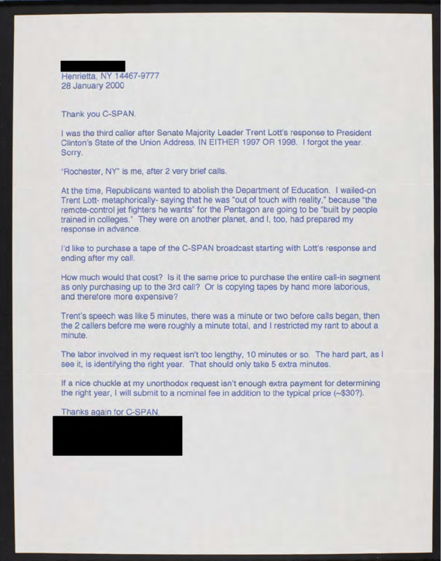 Requests to purchase a tape of their phone call in to C-SPAN and the response from the commentator.