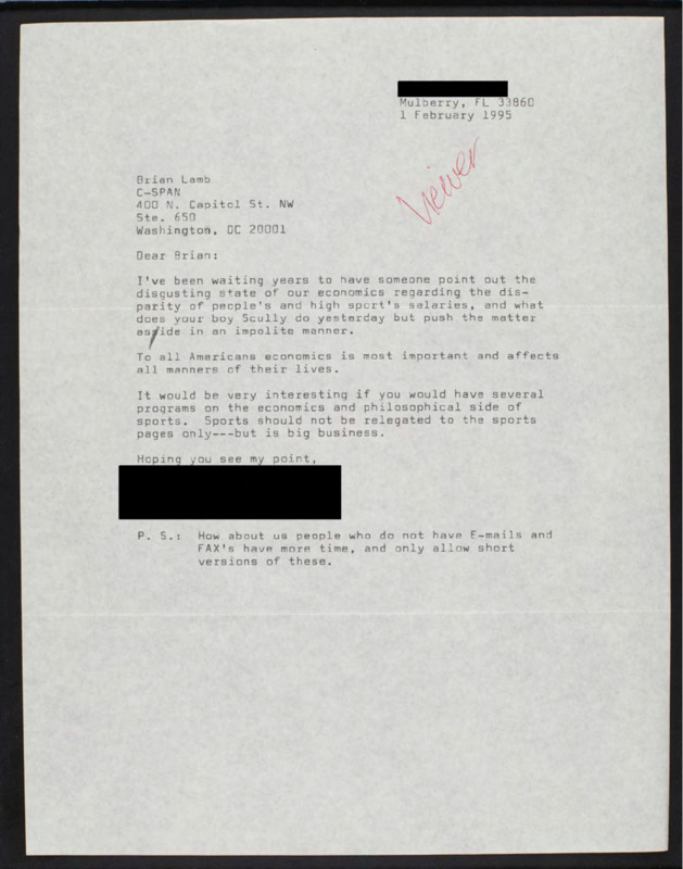 Discusses wealth inequality and suggests a program devoted to economics and sports.