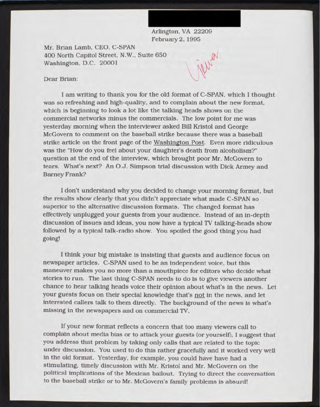 Thanks C-SPAN for the old format and complains about the new format, which they feel does not have enough audience participation.