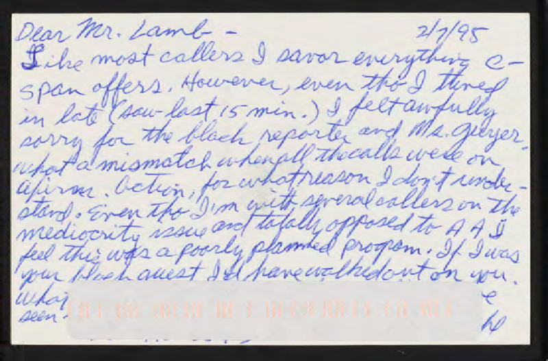 Expresses sympathy for a Black commentator being asked questions about affirmative action programs and offers their opinion that the programs were poorly planned.
