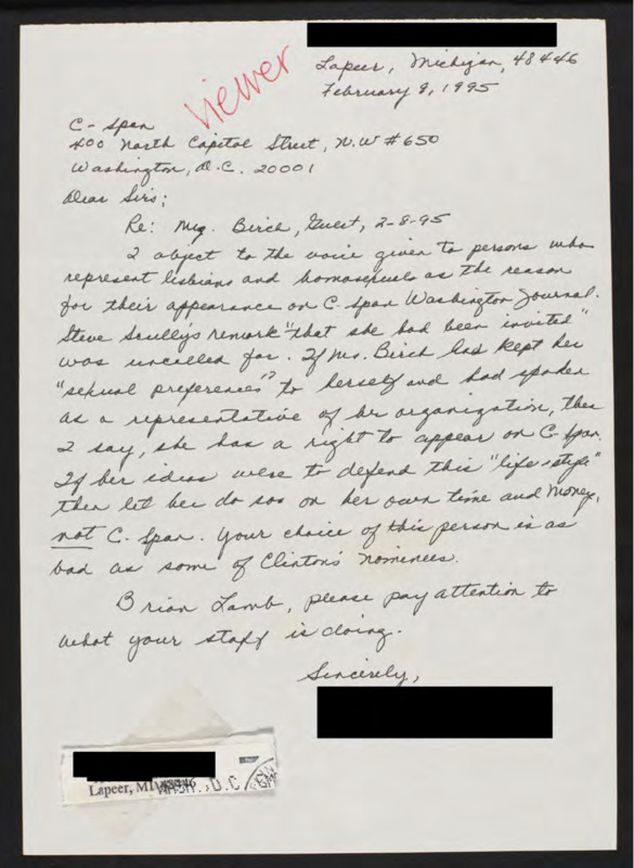 Letter to C-SPAN, 1995-02-09