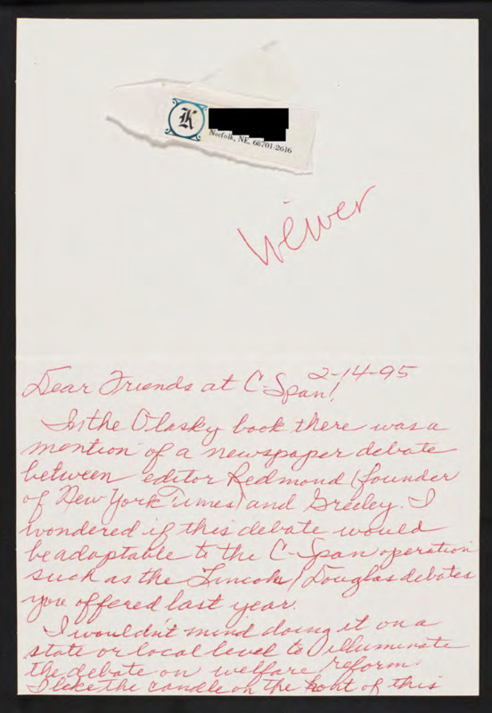 Letter to C-SPAN, 1995-02-14