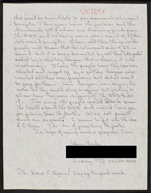 Criticizes "junkies and…drunkards" for taking money from social security, leaving less for others who are retired, then blames Congress for instituting what they feel is too many social programs.