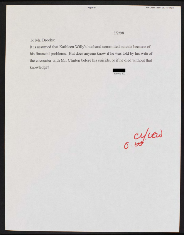 Asks whether the husband of one of Clinton's accusers knew of his wife's encounter with Bill Clinton prior to his death.