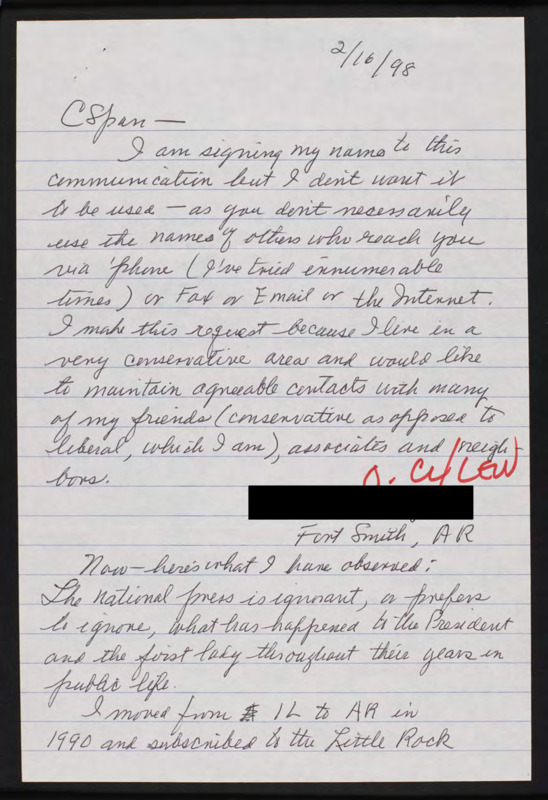 Describes why they feel that the news media is biased against Bill Clinton and believes the behavior is "nasty."