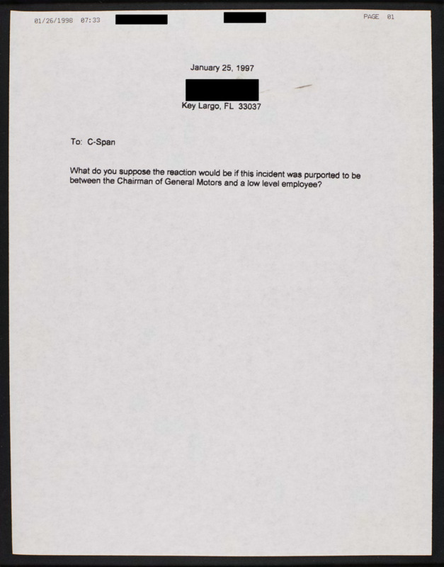 Asks if the reaction to the Clinton/Lewinsky situation would be the same if it were taking place in a corporation.