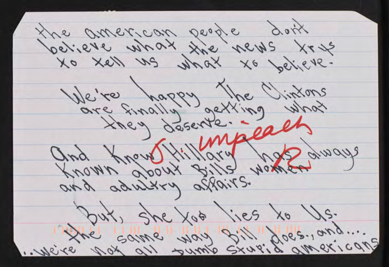 Calls Bill and Hillary Clinton liars and writes that feel the Clintons are getting what they deserve.