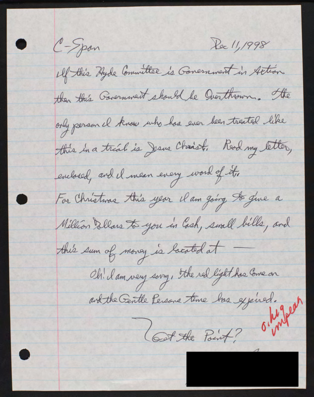 Letter to C-SPAN, 1998-12-11