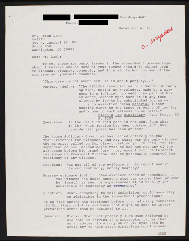Suggests a program clarifying several aspects of the impeachment process and lists those aspects.