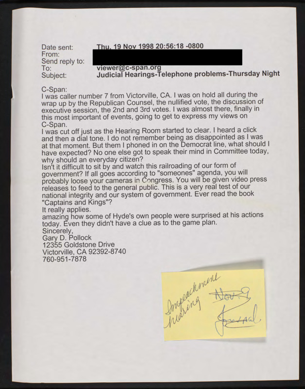 Relates their difficulty calling in to c-SPAN and comments that the government is being "railroaded."