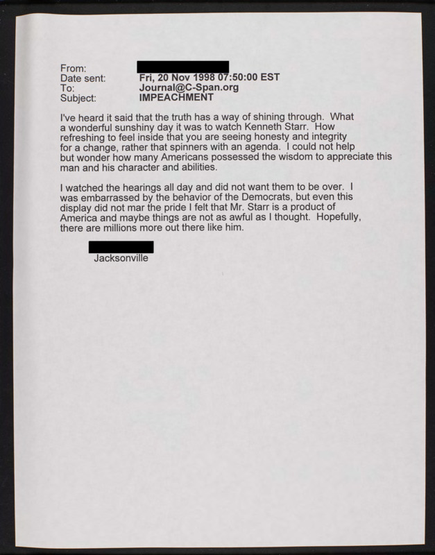 Letter to C-SPAN, 1998-11-20