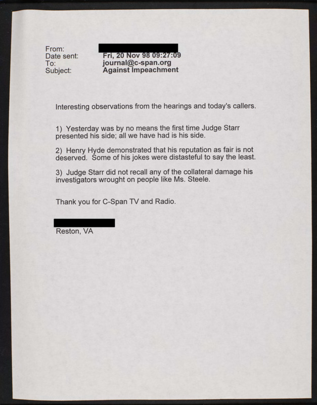 Lists observations from the impeachment hearings related to Ken Starr and Henry Hyde.