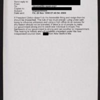 Believes Clinton should be impeached if he does not resign and that the case will set new precedents.