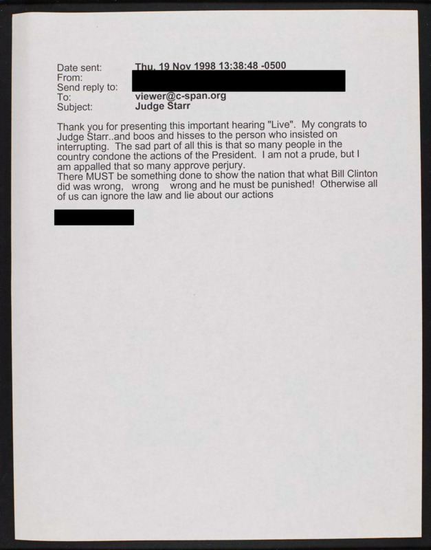Letter to C-SPAN, 1998-11-19