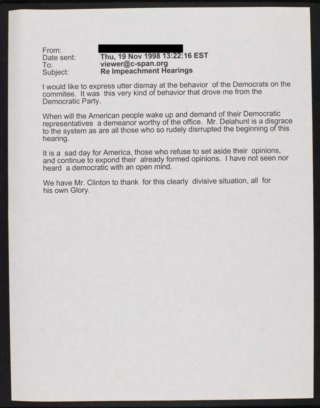 Letter to C-SPAN, 1998-11-19