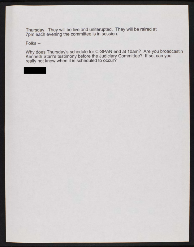 Asks about C-SPAN's schedule of the impeachment hearings.