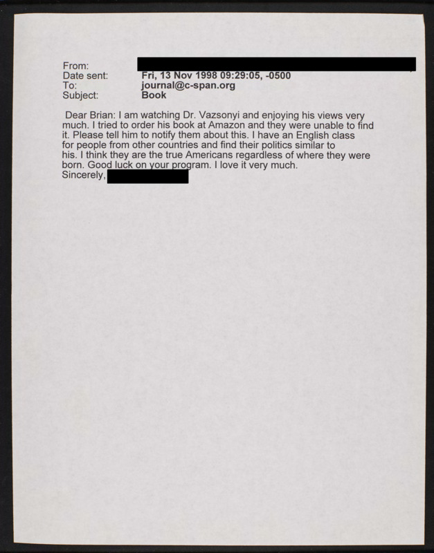 Letter to C-SPAN, 1998-11-13